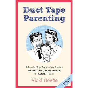 One of the stops I made on my book tour this summer was Phoenix Books in Burlington, Vermont.  There, next to my poster on the bookstore window, was a poster for another parenting book by Vermonter Vicki Hoefle.  Vicki and I never met, but I felt a kinship since we shared the same space on Bank St.  Not long after, Vicki reached out to introduce herself and her book Duct Tape Parenting.
